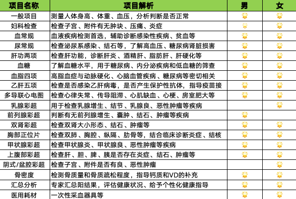 本次體檢項目