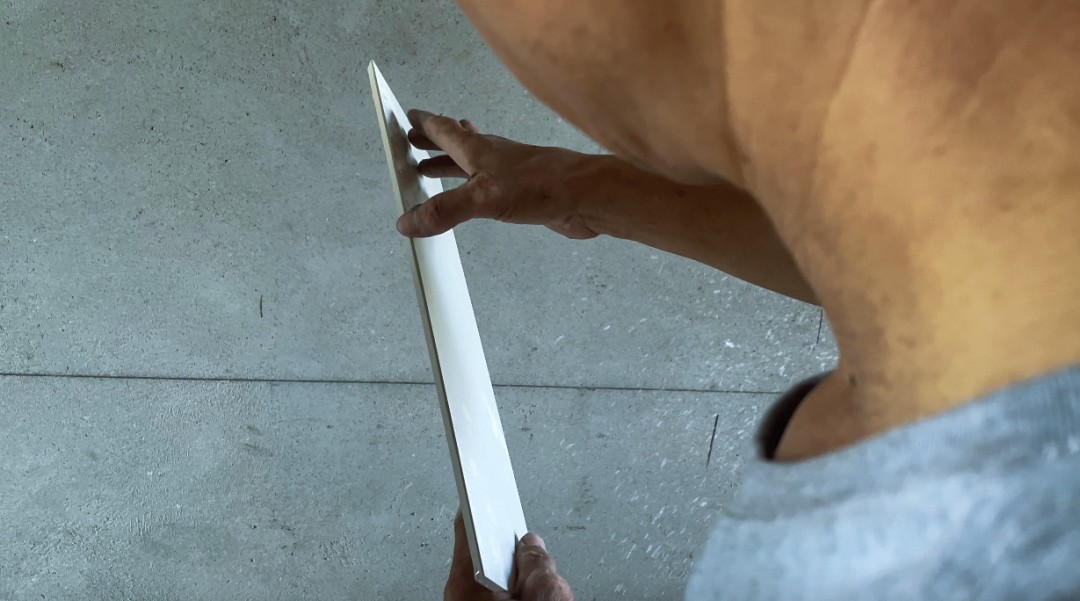 趙師傅干活喜歡做規(guī)劃,他會在貼磚之前會把那一個空間所有的磚都切割出來,整整齊齊的擺放,并且被擦拭的一塵不染。