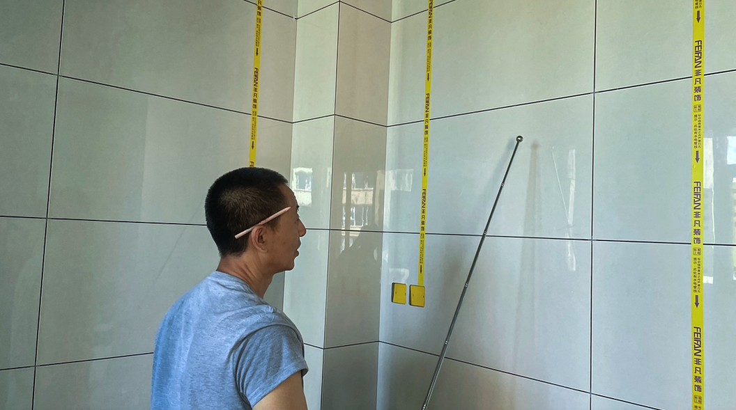 不僅公司對于工地有要求,趙師傅自己也對工藝上有著嚴格的標準,每一面墻都會主動進行檢查,看是否有空鼓情況?!皼]有規(guī)矩不成方圓?!鄙┳釉谝慌哉f道。