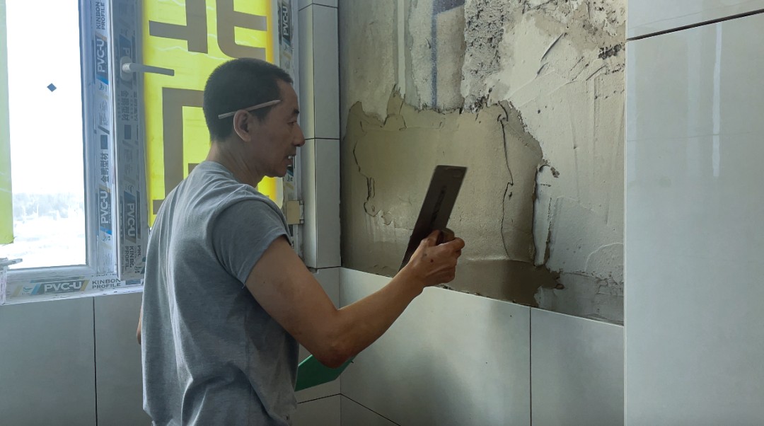 談到每一塊磚他是如何掌握厚度,并能保持一致的,他這樣回答:“我這都是笨方法,我用這個抹子在涂好的瓷磚膠上磕一下,就知道大概的厚度了,剩下的瓷磚全都保持一樣的厚度,這方法笨,但也挺好用的,都是自己研究總結(jié)?!?/span>